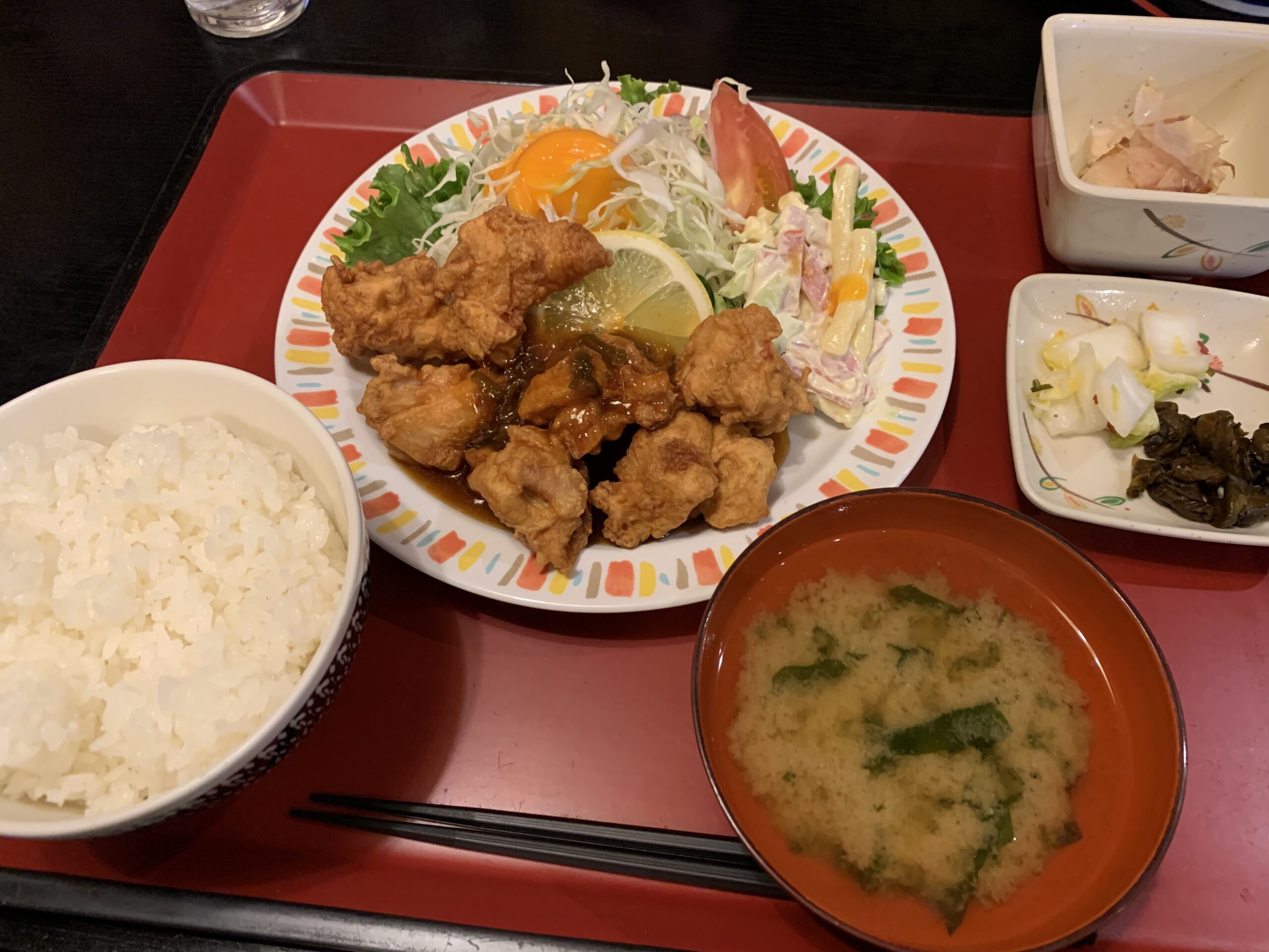 ↑タレが美味しい!から揚げ定食!