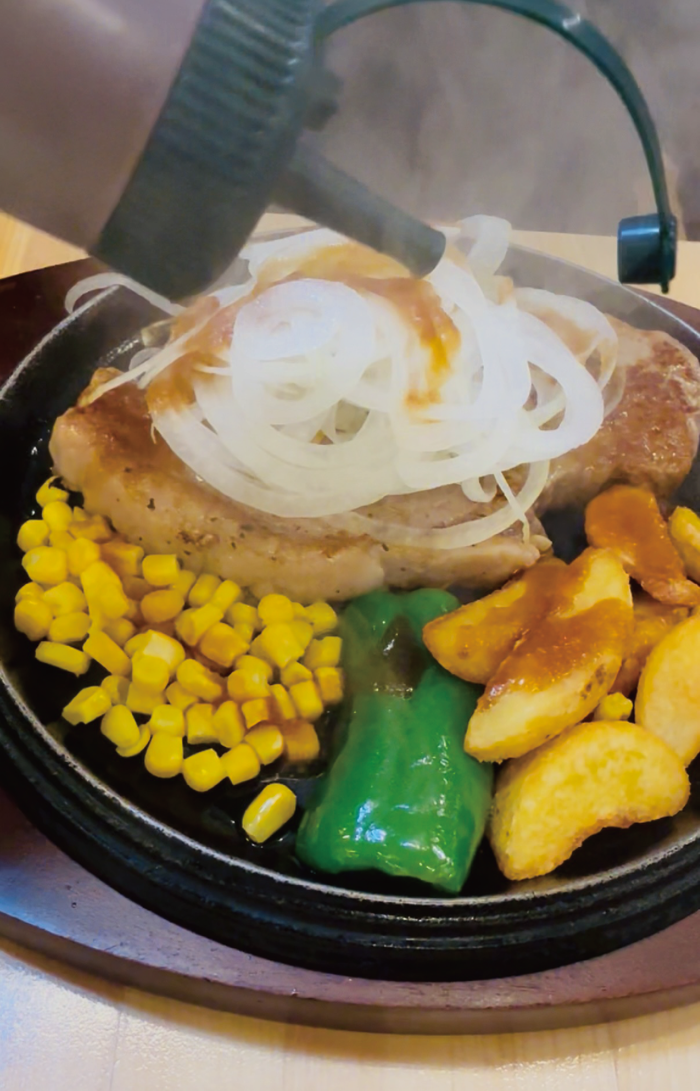 鉄板のじゅうじゅう焼ける音と香りが食欲をそそりました。