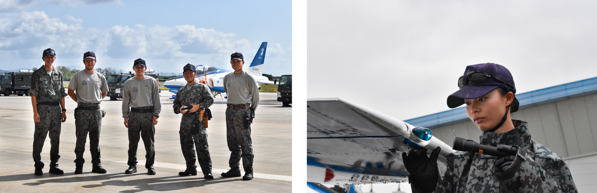 今回は、ブルーインパルスを通じて全国に感動と希望を届ける第11飛行隊の、パイロット4名と整備員2名、計6名の皆さまにお話を伺いました。実際に現場を間近で拝見し、雨の中での整備作業や日々の任務に向き合う姿に、想像していた“緊張感が張り詰めた現場”とは異なる印象を受けました。