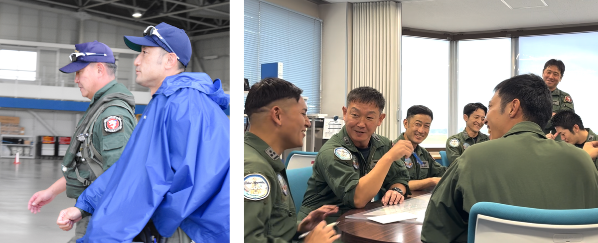 インタビュー取材の日は、晴天でフライト日和で、途中F-2の轟音が響くなかお話を聞かせていただきました。